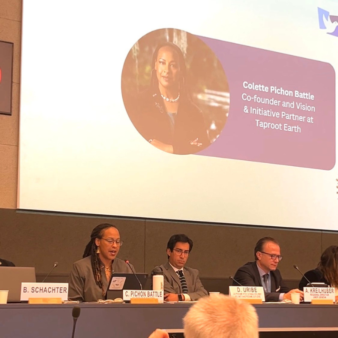 At the UN Forum on Human Rights, Democracy, and the Rule of Law, Taproot Earth's Colette Pichon-Battle joined global leaders  to center reparations as essential to addressing the climate crisis. Speaking on a high-level panel on systemic transformation, Taproot emphasized that democracy cannot thrive on a planet shaped by extraction and inequity, and that Global Climate Reparations offer a framework for rebuilding governance rooted in accountability, repair, and liberation. This gathering came on the heels of the International Court of Justice advisory opinion on climate change, providing a timely platform to link human rights, climate action, and the moral and legal imperative of repair. From Geneva to the Gulf South, the work remains clear: climate justice requires structural change that redistributes power to frontline communities.